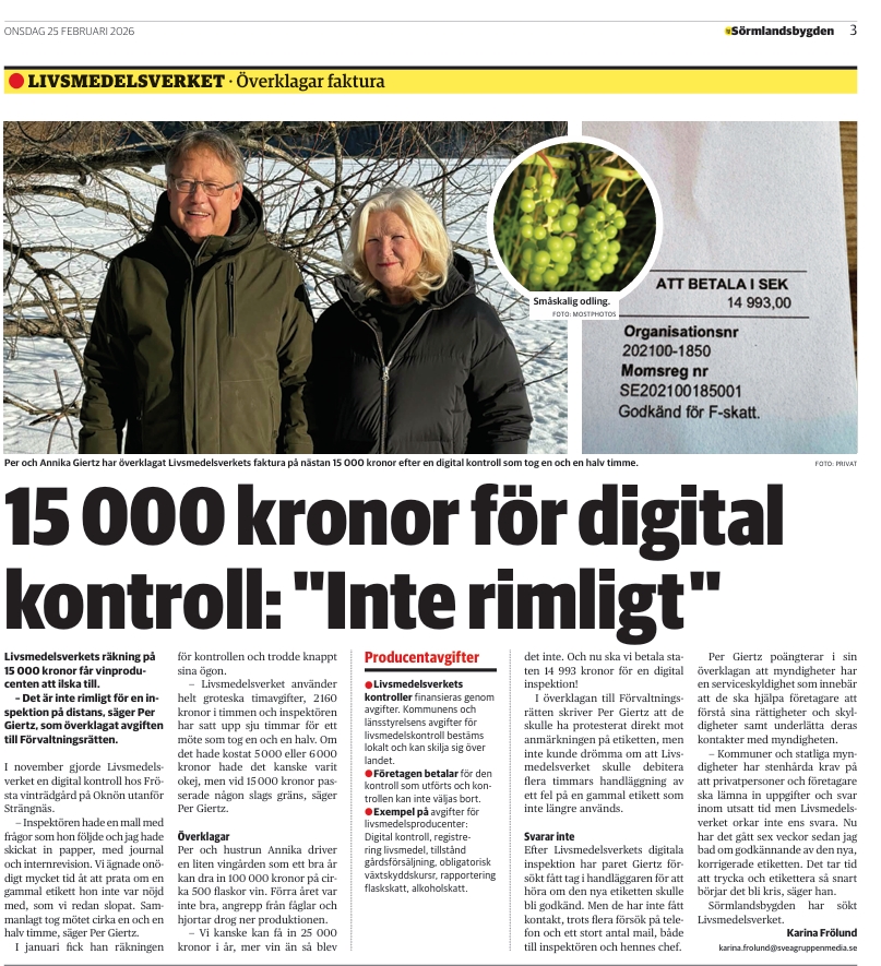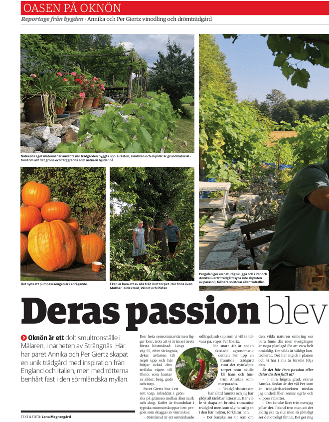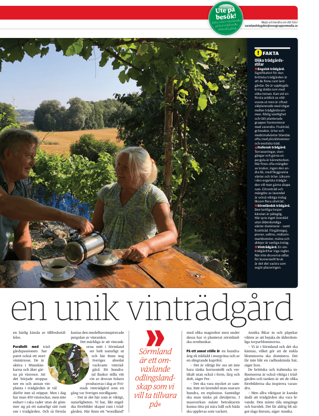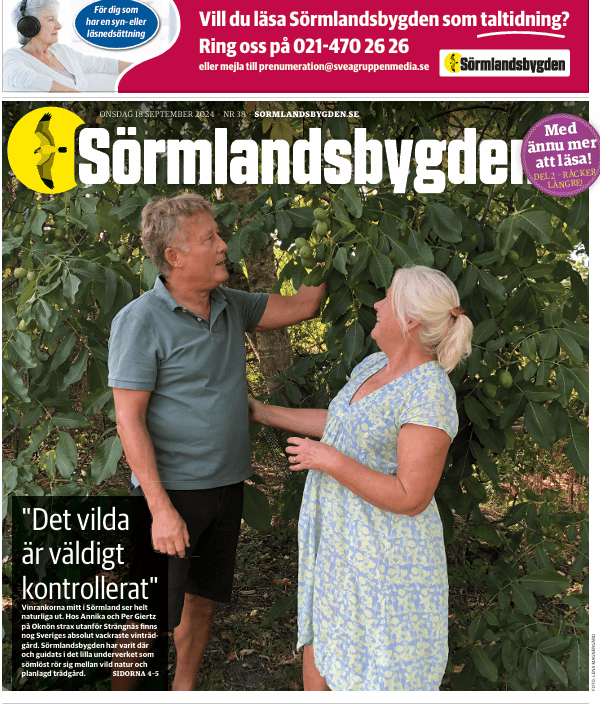 Läs om oss i ”Sörmlandsbygden”. (sormlandsbygden.se/2024/09/21/deras-passion-blev-en-unik-vintradgard)