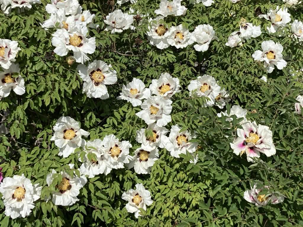Vinrankorna vill inte växa ensamma så vi samodlar med ett par hundra olika pionsorter, tjugofem olika magnolior, valnötter, jättetuja, tulpanträd, mullbär, kvitten, sekvoja och många andra vackra träd och buskar.